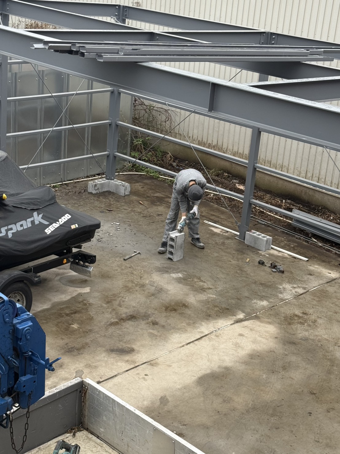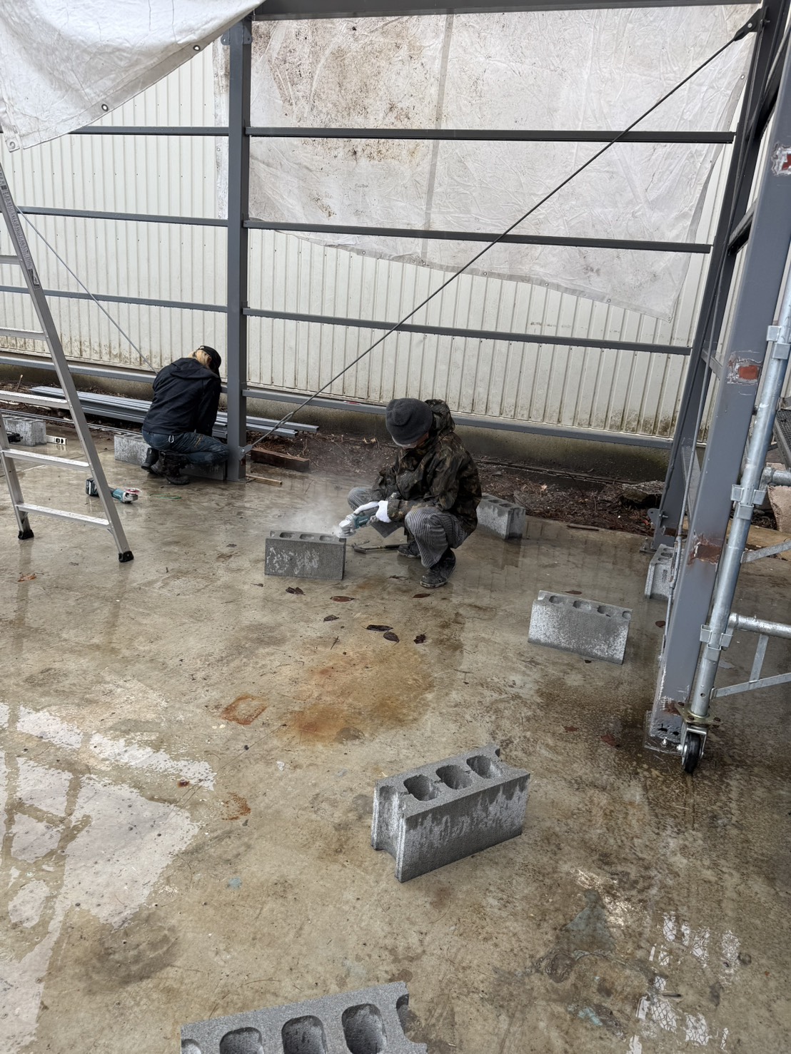 現在、会社の横に車庫を作っており、本日は会社で車庫作りの作業に取り組んでいる社員もいます🔨