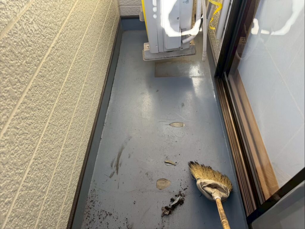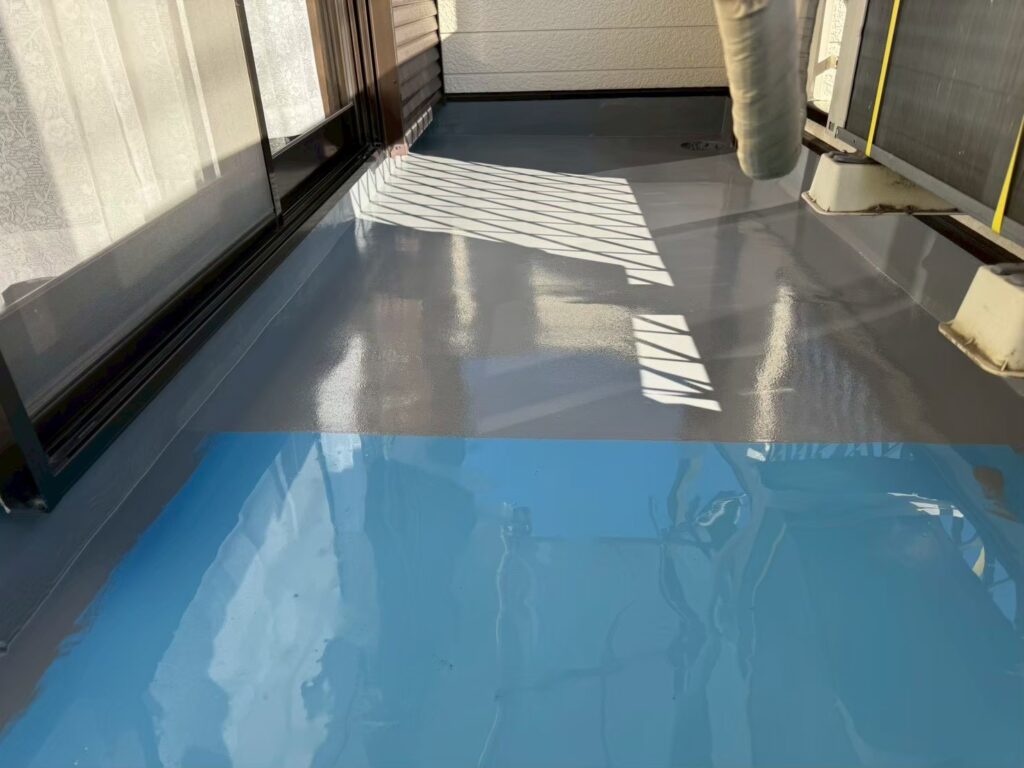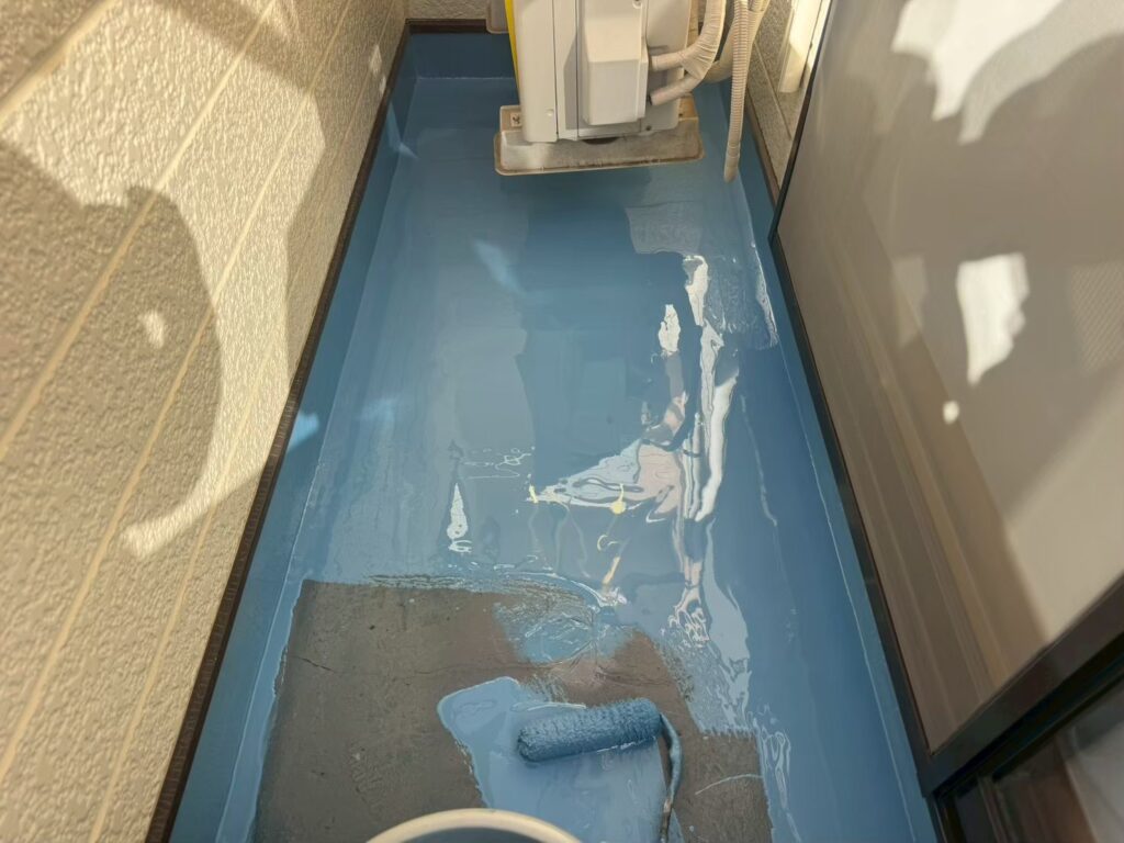 下地処理を行い、汚れや不要物をしっかり除去したうえで、防水材を均一に塗布していきます。